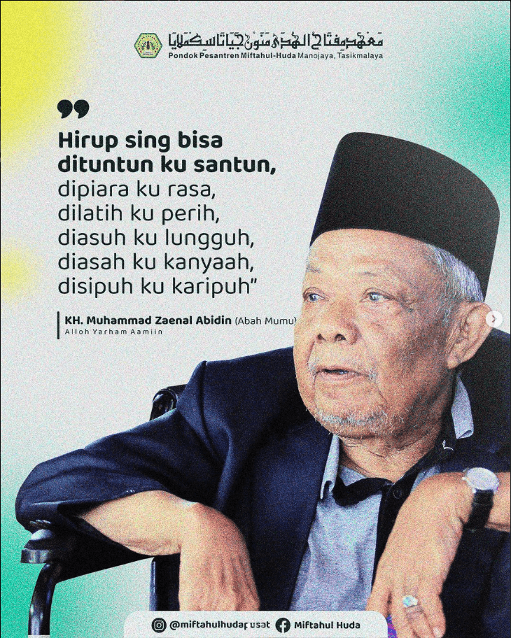 (Shodaqoh) Abah mumu sapaan hangat kami kepada beliau KH. Muhammad Zainal Abidin (Alm), selama mengenal beliau, tidak pernah sekalipun ketika kami bertemu, beliau tidak memberi senyum dan sapa hangat kepada kami, selalu memberi senyuman hangat dan guyon khas beliau, jelas jika tentang shodaqoh ilmu, beliau yang kami tahu adalah seorang Da’i kondang dan sangat menyayangi para santri.